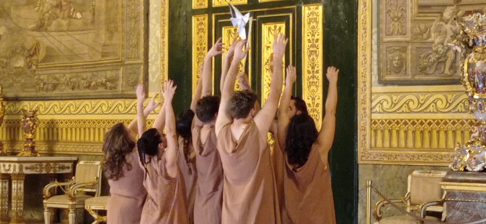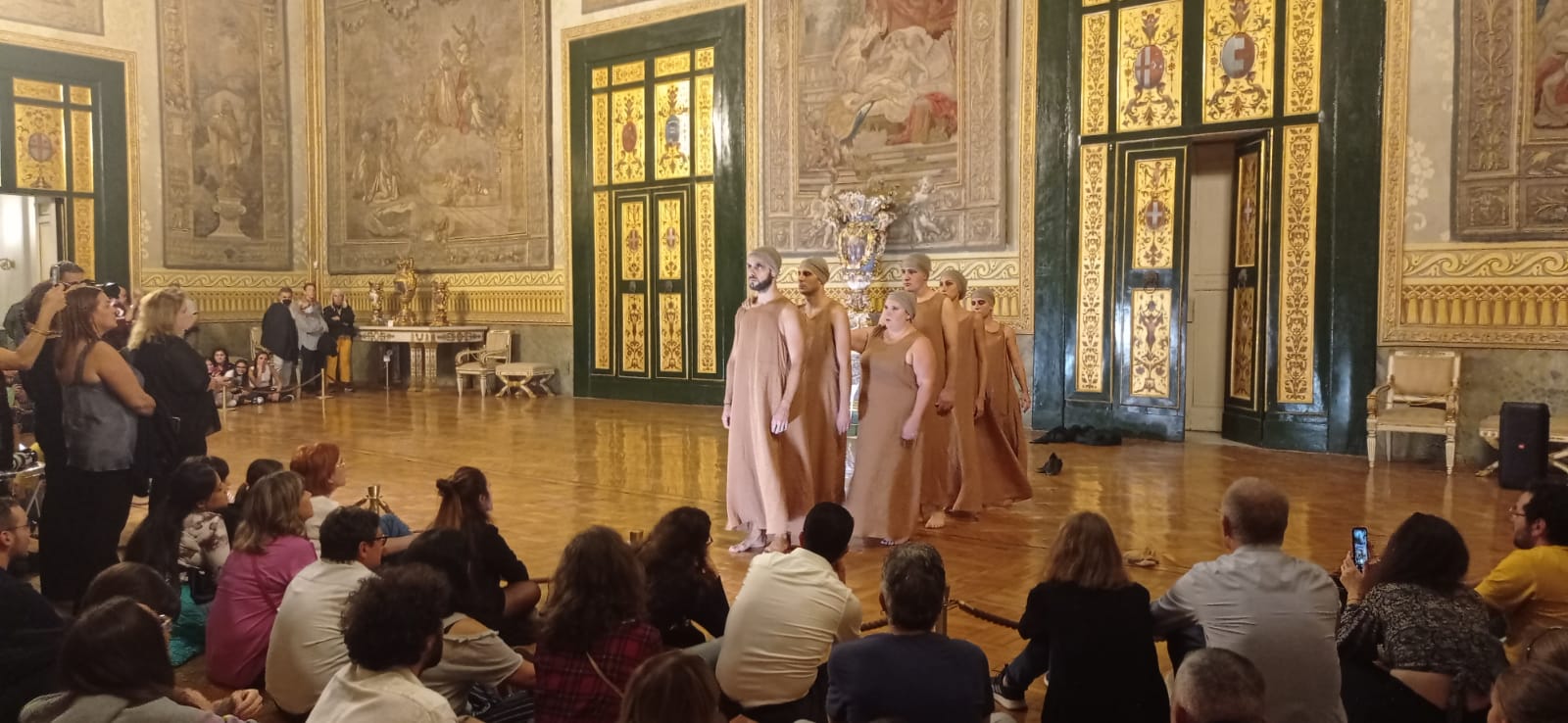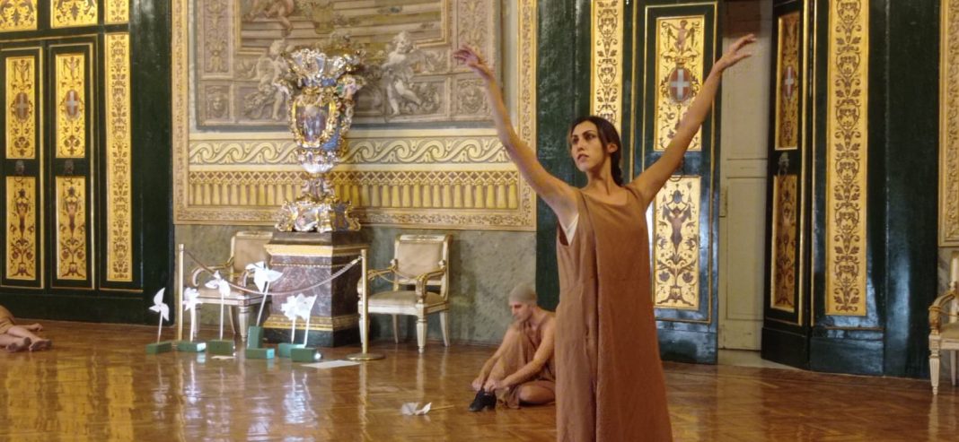 Le mirabolanti avventure dell’hidalgo Alonso Quixano conquistano una cornice storica ed emblematica della città di Napoli: il Palazzo Reale. Il salone d’Ercole diviene uno sfondo cavalleresco per la performance art “Don Chi? Tra mulini a vento e castelli in aria” ideata dall’artista Mauro Maurizio Palumbo, in scena con Salvatore Camerlingo, Maria Lucarelli, Ilaria Tucci, Sabrina Santoro, Nadia De Crescenzo, Kevin Catone. L’evento, tenutosi nella serata di sabato 29 ottobre, si inserisce all’interno della mostra in corso “Don Chisciotte tra Napoli, Caserta e il Quirinale: i cartoni e gli arazzi”, prorogata fino al 10 gennaio 2023.