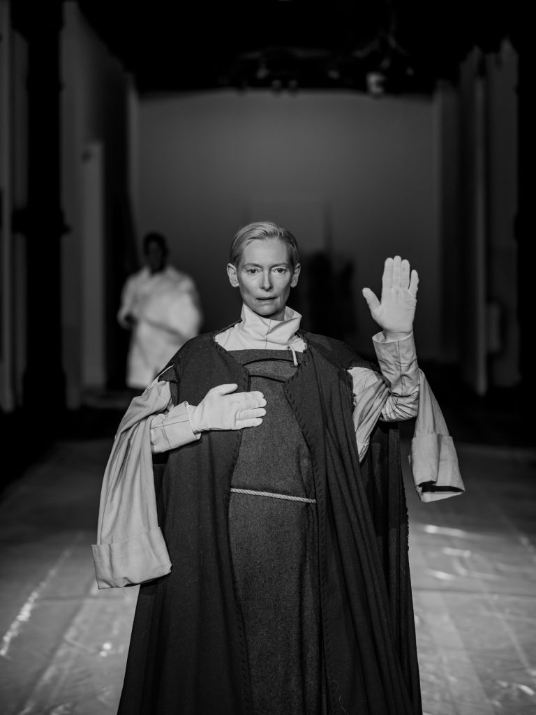 In questo susseguirsi di rimandi, è il corpo etereo della Swinton a diventare un residuo arcaico, dal quale la conoscenza si innesta come un baluardo nel quale il pensiero ricostruisce quell’unità indistinta di soggetto e oggetto. La performance riesce a colmare le distanze temporali, salta la realtà, frapponendosi nel sogno, proiettando nel futuro i desideri impalpabili.