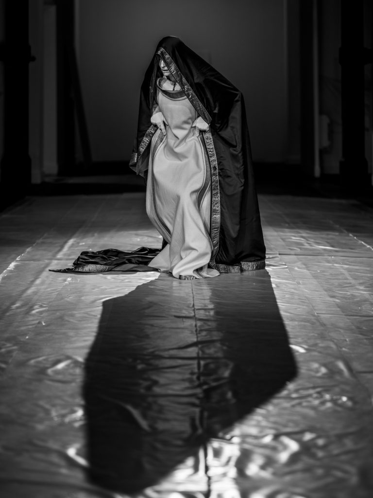 Un’epifanica metamorfosi nella quale si susseguono gestualità, silenzi, accompagnati dai costumi. Questi ultimi irradiano citazioni colte dalla storia dell’arte, metafisiche composizione dalla quali emergono il riferimento dagli affreschi di Piero della Francesca siti in Arezzo nei quali è possibile discernere gli abiti e i cappelli a comignolo dei sacerdoti: dal Il Vangelo Secondo Matteo del 1964.