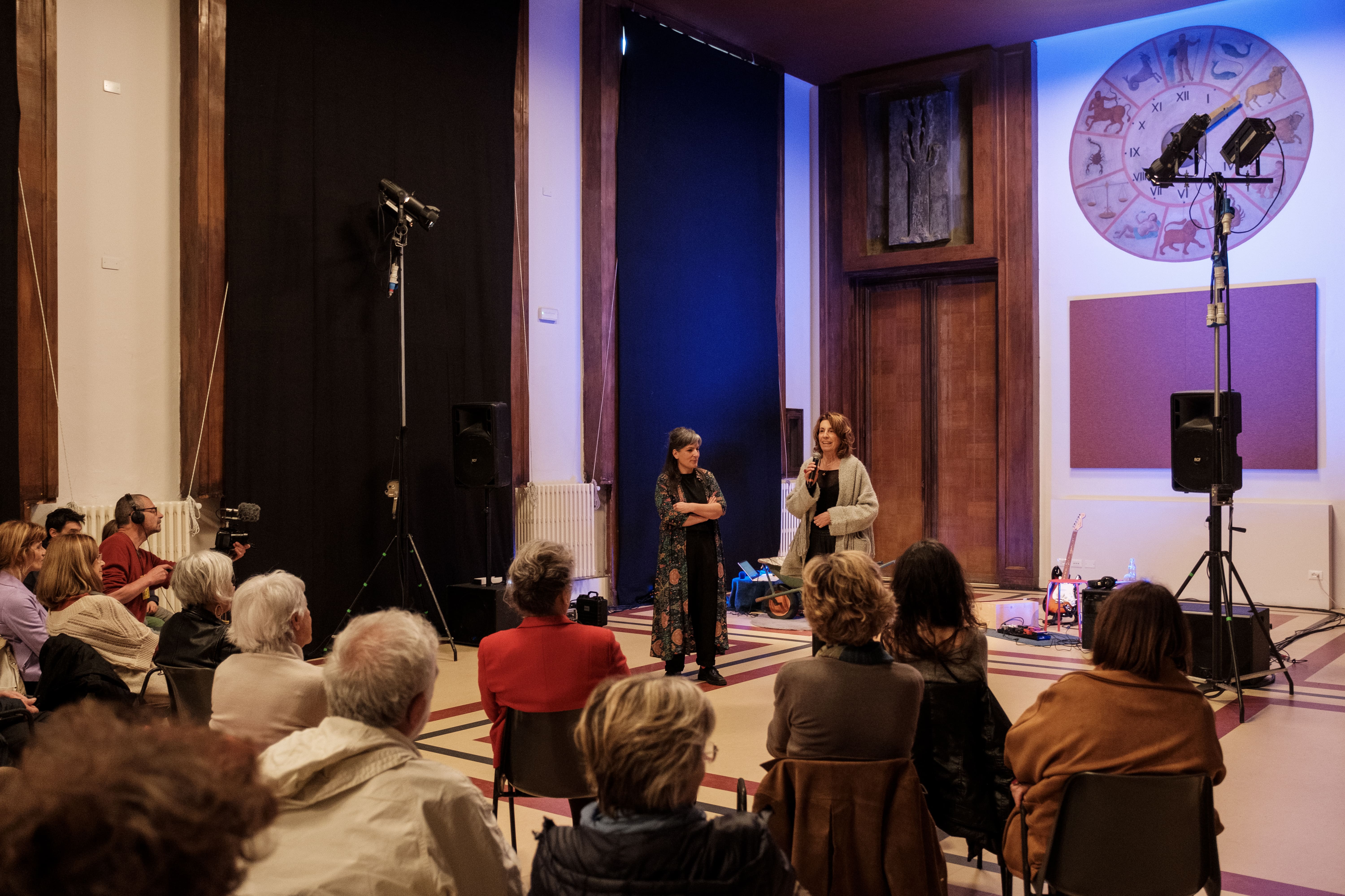 Gli spazi si occupano, diventano altro e allora in quelle sale dove il fascismo limitava i diritti, invece si mostrano connessioni, intrecci e moltitudini. È il caso dell’opera performativa e sonora, che ha inaugurato questa undicesima edizione, Chthulucene. L’umana parentela del collettivo T¥RSO. Un concerto improvvisato dove, con due performer, prende forma una geografia sonora in cui emergono infinite connessioni e intrecci umani. Oppure lo spettacolo teatrale Je Vous Aime: una performance per gli udenti di Diana Anselmo e con Sara Pranovi, dove si mette in scena l’antistoria, quella storia ignorata, selezionata e condotta ai margini. L’opera affronta i temi dell’audismo, del fonocentrismo, del linguicismo e di tutte quelle parallele imposte alle persone sorde nel corso della storia. Cosa vuol dire segnare? Se in principio c’era il verbo e il verbo era Dio, dove si colloca il gesto?
