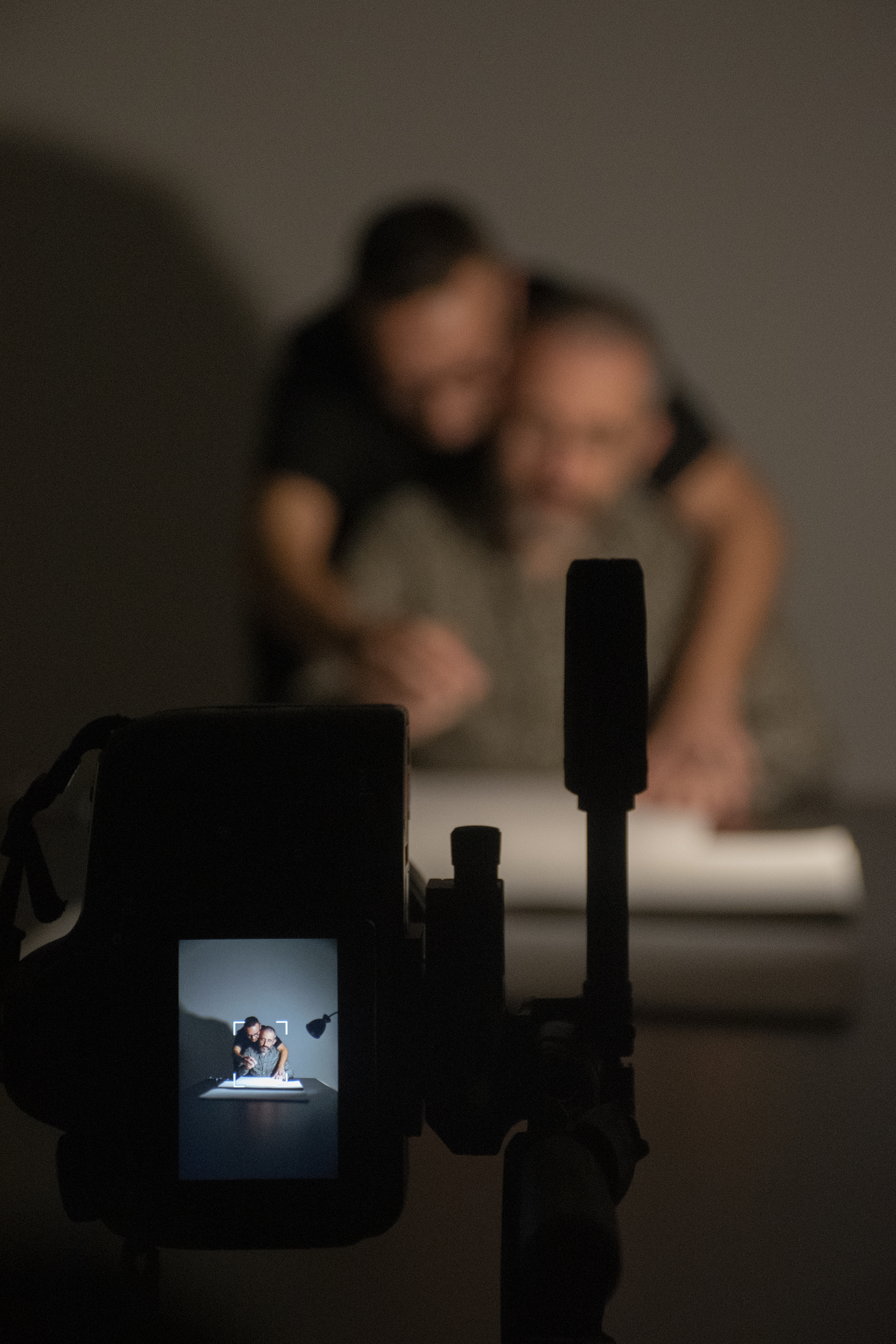 Nel mentre, una macchina fotografica azionata da remoto su cavalletto e una macchina da presa testimoniavano in maniera continuativa il flusso dei partecipanti e l’esercizio in atto. Intanto due persone alla volta scattavano fotografie agli allievi di Talia Alineri, presso l’Accademia Italiana.