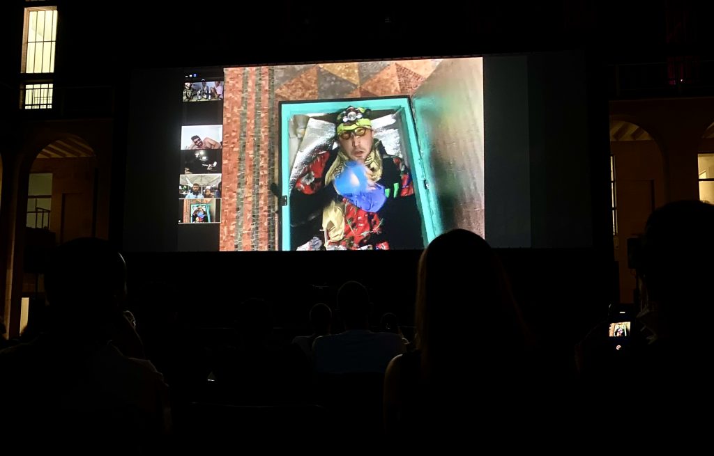 Come un Virgilio post-moderno in un inferno contemporaneo, la star Gigi Veritas ci ha condotti in un più che mai vuoto Palazzo dell’Arte. La Triennale, in una nuova veste, si è trasformata in un set in cui attori e performer si muovono e agiscono. Il pubblico ha potuto assistere alla creazione di un Turbo Film direttamente dal Giardino della Triennale. Una dimensione alienante: uomini-spettatori legati a una verità filtrata dallo schermo, mentre la realtà si svolge a una manciata di metri. Sorge spontanea la riflessione sul nostro rapporto con la tecnologia e sulla percezione distorta della realtà a cui ci ha limitati.