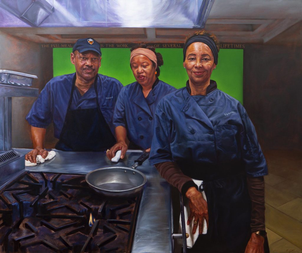 - Sulle pareti della maggior parte degli edifici universitari degli Stati Uniti sono esposti ritratti di old white men: decani, donors, mecenati, personaggi illustri ed ex studenti, rigorosamente anziani e, soprattutto, bianchi. Ma a Princeton, l’artista Mario Moore ha deciso di rendere omaggio anche alle altre persone, principalmente afroamericani, che con il loro lavoro quotidiano, tanto prezioso quanto silenzioso, permettono il regolare svolgimento di tutte le attività, dai cuochi agli addetti alle pulizie, fino alle guardie di sicurezza.