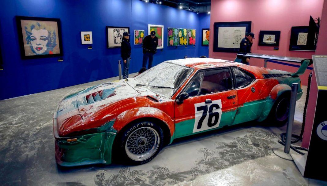 Andy Warhol personalizzò la BMW M1 nel 1979, per il progetto Art Car, già avviato nel 1975 dalla nota casa automobilistica. Il primo esemplare fu realizzato da Alexander Calder, una BMW 3.0 CSL da corsa, e subito fu chiaro che il progetto doveva andare avanti. Dopo gli interventi di Frank Stella e Roy Lichtenstein, toccò a Warhol mettere le mani sulla supercar della casa bavarese. A differenza dei predecessori, invece di allestire un modello a grandezza naturale e far dipingere l’auto ad altri, Warhol, il fautore della spersonalizzazione dell’autore, volle lavorare personalmente all’auto. «Ho provato a mettere in immagini la velocità. Quando un’auto va molto veloce, i colori e le linee si confondono», così Warhol descriveva il processo. In soli 28 minuti cronometrati, l’artista applicò ben sei chili di colore. I fortunati spettatori della 24 Ore di Le Mans del 1979 l’avrebbero vista sfrecciare in pista per la sua prima e unica gara: fu un onorevole sesto posto ma di certo in pole position nella storia dell’arte.