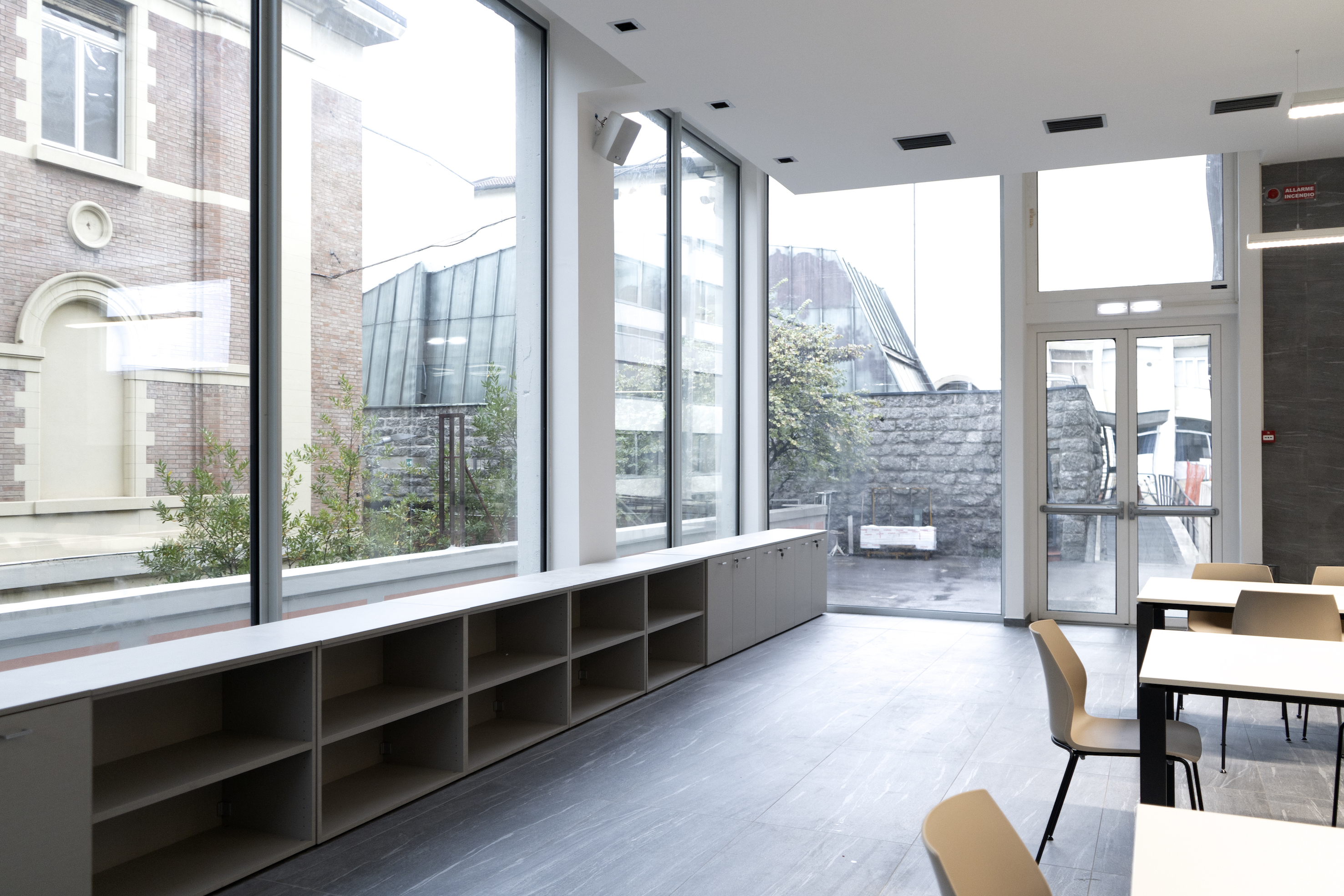 L’inaugurazione dell’Ala Irnerio è avvenuta subito dopo la cerimonia. Progettata nel 1956 dagli architetti Farpi Vignoli e Melchiorre Bega, quest’area aveva inizialmente ospitato il liceo artistico cittadino e rappresentava uno dei capolavori dell’architettura modernista locale. Rimasta a lungo in attesa di un restauro, l’Ala Irnerio ha finalmente riaperto i battenti, riportata a nuova vita dallo Studio Architetto Egidio Lomi. Gli interventi hanno rispettato i tratti originali della struttura, migliorandone al contempo le funzionalità: i tre piani superiori ospitano ora aule dedicate ai percorsi di Triennio e Biennio, mentre il piano seminterrato, precedentemente destinato a deposito, è stato convertito in un moderno laboratorio per il corso di Design del prodotto, corredato di tavoli realizzati in collaborazione con Mobilferro.