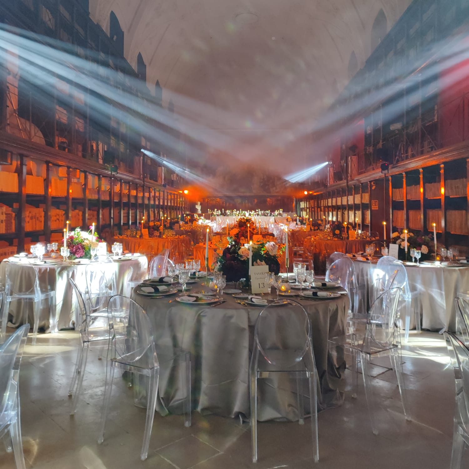 Decine di tavoli imbanditi a festa, precisamente un matrimonio, con tanto di candele e bouquet floreali. Non possono mancare faretti, casse per la musica e una macchina del fumo, per creare la giusta atmosfera. Peccato che gli spazi siano quelli dell’Archivio di Stato di Napoli, situato nell’antico monastero benedettino dei Santi Severino e Sossio, dove sono conservati preziosi documenti risalenti fino al Regno dei Borbone. Almeno non c’erano le pizze in cartone consegnate al volo sulle vespe, come successo a giugno scorso durante la festa privata tenuta dall’Estetista Cinica, al secolo Cristina Fogazzi, nella Biblioteca Nazionale Braidense.