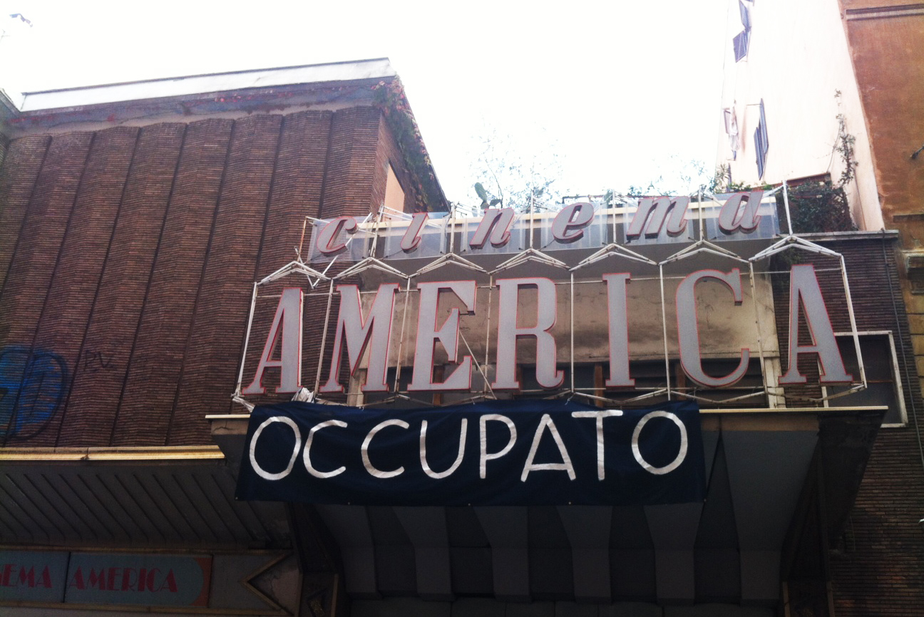 Il Cinema America, in Piazza di S. Cosimato, nel cuore di Trastevere, chiuse per fallimento nel 1999 e, dopo alcuni anni di abbandono, venne acquistato nel 2002 da Progetto Uno Srl, per ricavarne appartamenti di lusso e un garage. Il 13 novembre 2012, però, con i lavori ormai imminenti e approvati dalla giunta Alemanno, un gruppo di amici ventenni occupò il cinema, fondando l’associazione Piccolo Cinema America che, immediatamente, si fece conoscere in tutta la Capitale per l’organizzazione di festival e di eventi legato al mondo del cinema e aperti alla cittadinanza. Nei diciotto mesi successivi, i volontari rifecero tetto, grondaia, pavimenti, impianto elettrico, creando una biblioteca e un’aula studio, anche grazie a 100mila euro raccolti a suon di sottoscrizioni.