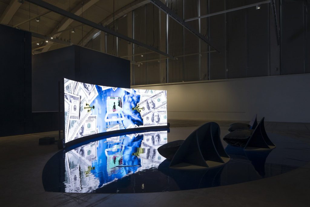 Indagini presenti anche all’Helsinki Art Museum con la video installazione di INTERPRT, agenzia di ricerca che si occupa di giustizia ambientale e diritti umani. Nel loro nuovo lavoro per la Biennale intitolato Colonial Present: Counter-mapping the Truth and Reconciliation Commissions in Sápmi è esaminata l’espropriazione delle terre delle popolazioni sami. Occupazione che continua ancora oggi, con la costruzione dei parchi eolici e dei Data Center. Quello che viene chiamato “colonialismo verde” sta infatti avvenendo a spese delle popolazioni indigene, i cui diritti sono ignorati in nome della sostenibilità. L’installazione raccoglie materiali d’archivio, cartografiche, dati ambientali, interviste, riguardanti la disputa legale in corso tra le comunità di allevatori di renne sámi e i progetti di energia eolica a Øyfjellet nella contea di Nordland nella Norvegia settentrionale. Materiali presentati anche alla Biblioteca Oodi, dove oltre cui a mappe e alla cronologia dell’espropriazione della terra sono raccolte anche immagini d’archivio delle scuole residenziali sámi. La video installazione di Tabita Rezaire Deep Down Tidal indaga le morfologie legate all’acqua. Dai racconti delle città sommerse, alla presenza delle infrastrutture dei cavi sottomarini in fibra ottica per le reti internet, ai profughi che perdono la vita nel Mediterraneo, l’abisso oceanico raccoglie narrazioni perdute appartenenti alla storia dell’umanità.