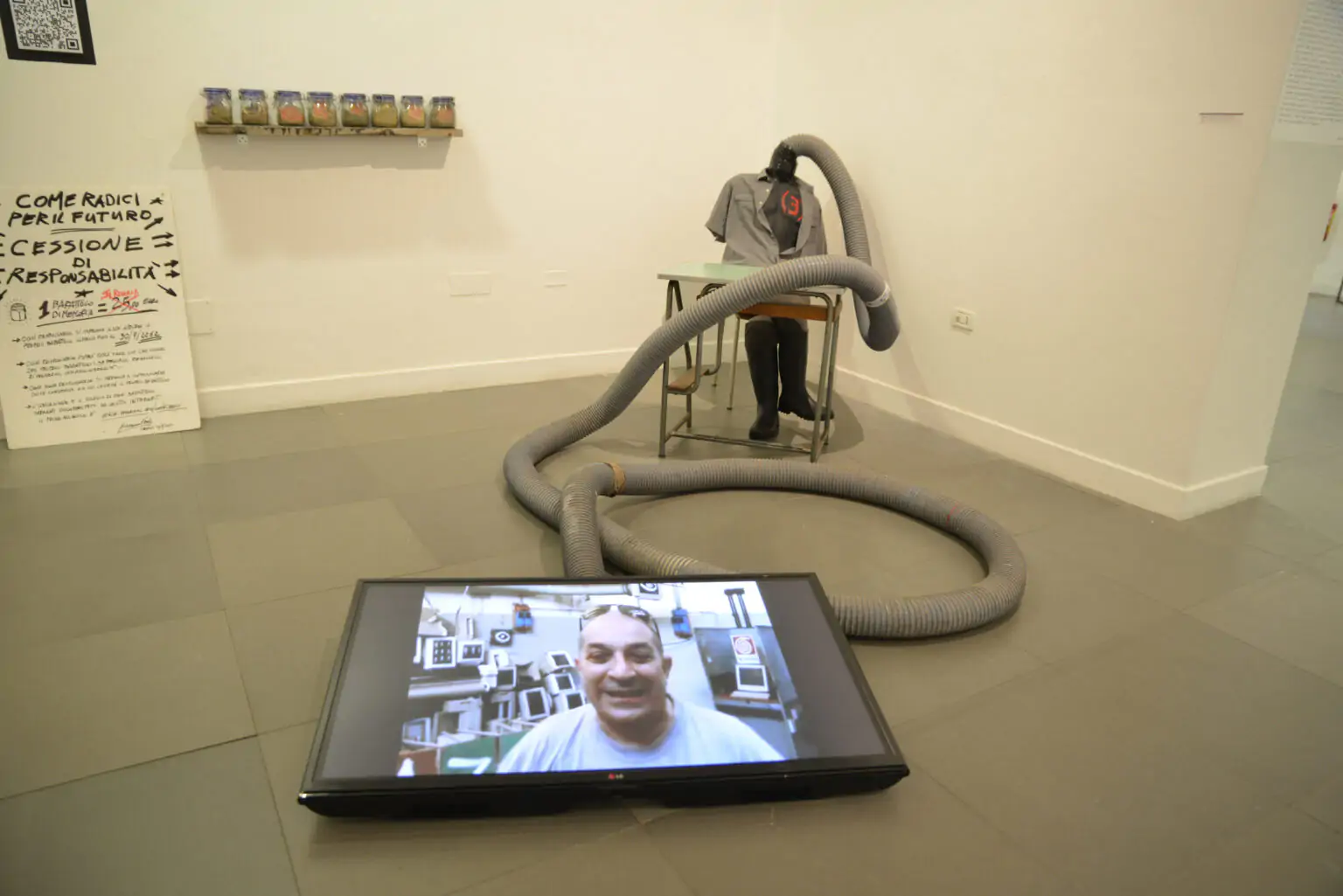 Le tecno oper’azioni di Verde toccavano la dimensione installattiva e performativa e non esiste libro di media art italiana e di videoteatro che non citi il suo lavoro come pionieristico: il low tech era il suo marchio e il suo lasciapassare per il mondo, con il quale si inventava pratiche irriverenti, dissonanti. E così, per molti mesi, ci siamo preoccupati di radunare materiali, selezionarli, raggrupparli ma anche disordinarli, mettendo in mostra Tv rotte, opere video analogiche e installazioni interattive. Cominciare con il tema dell’artivismo è stata una scelta naturale e unanime, proprio per il carattere politico dell’arte di Giac che doveva essere protagonista; ma di una cosa eravamo certi: l’atto più artivista di tutti lo avevamo fatto noi portando Giacomo dentro un “contenitore” istituzionale come un Museo – troppo spesso refrattario alle tematiche sociali e politiche e inconciliabile con i formati d’arte non “normalizzati”.