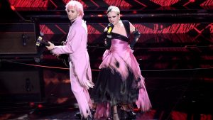 Il suo monologo (al quale viene concesso uno spazio forse a un’ora un po’ troppo tarda) è dirompente e, insieme alle parole gentili e pacate di Michele Bravi dell’ultima serata, ricorda l’importanza della libertà individuale e dell’unicità di ogni individuo. Il suo personaggio riporta alla memoria pietre miliari della nostra cultura popolare come Paolo Poli e Alighiero Noschese, omaggiando la varietà, la libertà e un modello di tv più inclusivo.