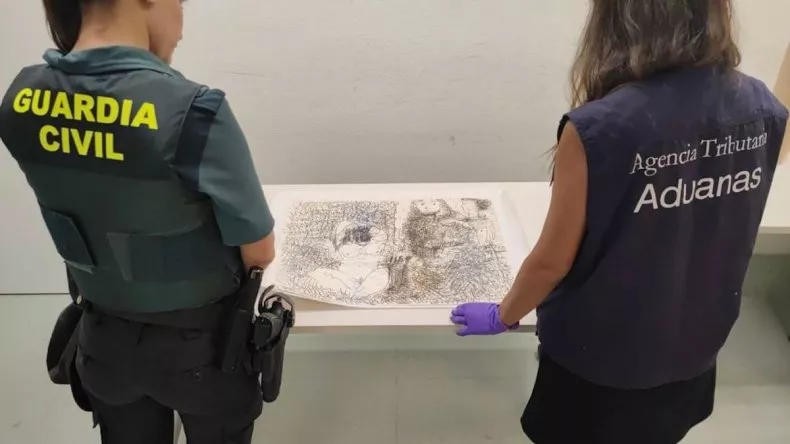 Inizialmente segnalato già dai funzionari doganali svizzeri come sospetto, il viaggiatore è stato successivamente interrogato all’atterraggio dagli omologhi spagnoli, che hanno poi perquisito il suo bagaglio, ritrovando l’opera custodita in un tubo di carta. Inizialmente il passeggero ha negato la necessità di una dichiarazione doganale, sostenendo che il pezzo fosse una copia e fornendo anche una fattura di 1.500 franchi svizzeri pagati per il lavoro. In fondo alla valigia, tuttavia, i funzionari hanno trovato un’altra ricevuta, che faceva riferimento al disegno di Picasso, da una galleria d’arte con sede a Zurigo per la somma di 450mila franchi.