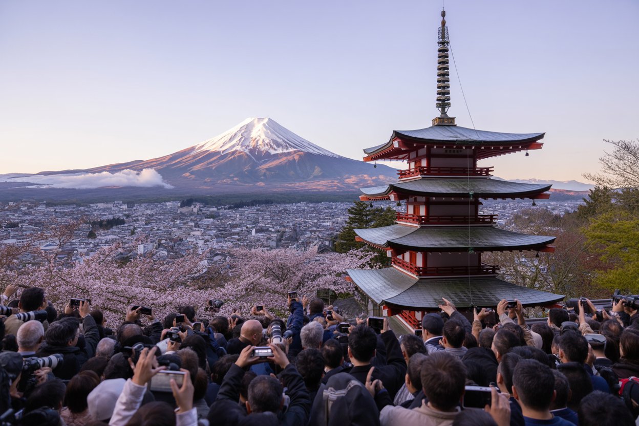 Durante la stagione della fioritura dei ciliegi – l’hanami, uno dei rituali più radicati e identitari della cultura giapponese – Fujiyoshida arriva a registrare oltre 10mila presenze al giorno. Un’affluenza alimentata da una combinazione di fattori: il deprezzamento dello yen, che rende il Paese particolarmente appetibile per i visitatori stranieri, e l’esposizione massiva sui social media, che ha trasformato scorci iconici come il parco di Arakurayama Sengen in mete da consumo rapido, più che in luoghi di esperienza culturale.