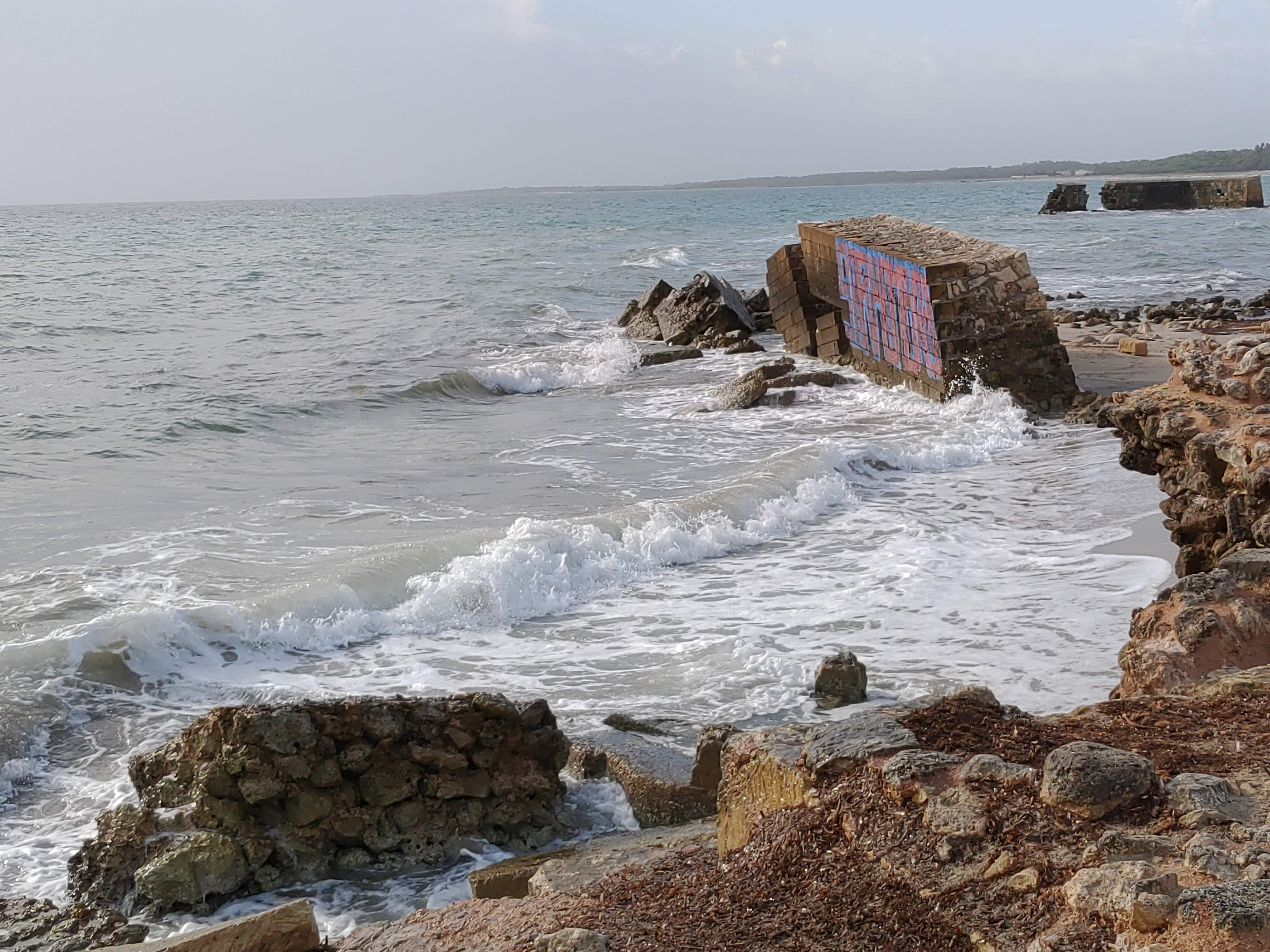 Il molo di Adriano a San Cataldo (Lecce), risalente al II sec. d.C., con successive ricostruzioni datate fino ai primi del Novecento, sorge su una spiaggia libera che ospita le soste distratte e disordinate dei bagnanti: la presenza di un sito di rilevanza storico-archeologica spesso passa inosservata e quel luogo viene scambiato per un’area di bivacco, campeggio, senza limite al peggio. Dopo giorni, mesi e anni in cui perfino la parte antica del molo è stata disseminata di ogni tipo di rifiuti (dai contenitori di bagnoschiuma alle scatole di esche da pesca, fino a bottiglie di plastica e vetro), qualcuno è arrivato a vandalizzare la sua parte più recente, il muro che un tempo formava un porto a forma di L in mare. Una bomboletta spray, la complicità del buio, dell’incuria, della mancanza di sorveglianza e il gioco è fatto: una scritta gigantesca fronte-retro, dal significato incomprensibile, è comparsa in un luogo che dovrebbe essere conosciuto, ammirato, rispettato e non di certo attaccato. La sera del primo agosto il muro è stato imbrattato sia sul lato che si affaccia sulla spiaggia, sia su quello che volge al mare.