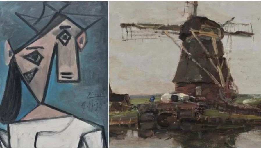 I dipinti rubati di Picasso e Mondrian erano tra le opere di spicco della collezione d’arte della Grecia: il dipinto di Picasso era un busto femminile del 1939, una Testa di donna, realizzato in bianco e azzurro in ricordo della bandiera della nazione greca, reso nel suo inconfondibile stile cubista. Il pezzo fu regalato alla Grecia dallo stesso Picasso nel 1949 come recita l’iscrizione sul retro dello stesso dipinto, «Per il popolo greco, un tributo di Picasso», in onore del rispetto dimostrato dall’artista per la resistenza greca all’occupazione nazista durante la seconda guerra mondiale. L’altra opera ritrovata, del pittore olandese Piet Mondrian, Stammer Mill with strayed sky, è un dipinto rappresentante un mulino a vento e risalente al 1905, precedente quindi la più nota astrazione geometrica, caratterizzante del suo corpus di opere successive.