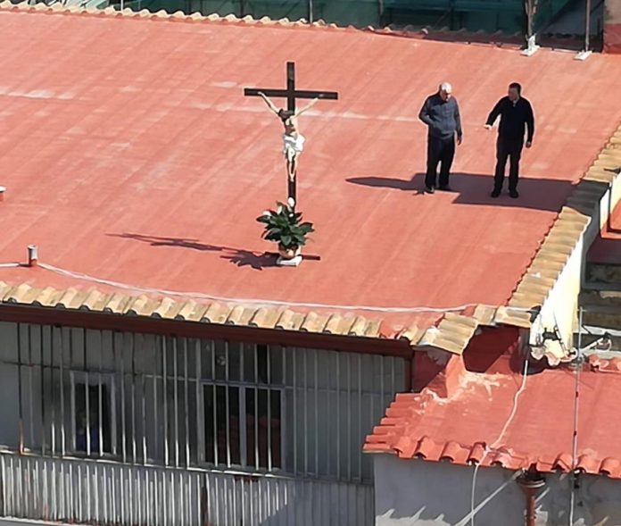 E allora l’idea della messa sul tetto è venuta a Don Lorenzo Fedele (nomen est omen) della chiesa di Santa Maria della Salute: un’azione pensata per venire incontro alle necessità “spirituali” dei suoi parrocchiani. Così tra il sacro e il profano, munito di cassa e altoparlante don Lorenzo nel rispetto delle ordinanze anti coronavirus, ha allestito un altare con il crocifisso e un’immagine sacra sui tetti della sua chiesa, e inutile dirlo, è stato ascoltato dai suoi parrocchiani, molti i giovani, affacciati al balcone o dalla finestra della propria abitazione.