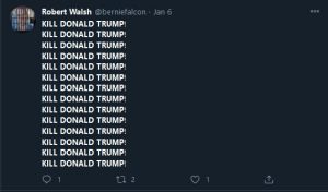 A ri-dunque se Donald Trump e amici incitano all’odio e alla violenza saranno i tribunali a dover decidere a riguardo nelle dovute sedi, non di certo le linee guida dalla community. Soprattutto se, come è ben dimostrabile, i “Kill Donald Trump” sono stati tutti belli al loro posto fino a poco fa (nell’immagine sottostante il tweet postato il 6 gennaio è stato rimosso ieri). Come mai questa disparità? Speriamo vivamente che anche gli odi trovino il giusto peso sulla bilancia, visto l’odio con cui si accoglie l’odio della “destra” e l’amore con cui si culla l’odio della “sinistra”.