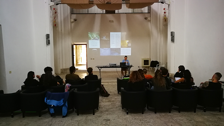 «Il laboratorio, condotto dall’artista Francesco Arena, si apre con l’obiettivo di lavorare sull’analisi del processo artistico inteso come fase di studio, attribuzione di significato e riflessione semiotica della costruzione di immagini. L’analisi delle singole ricerche sarà messa al centro come metodo ed elemento di indagine sperimentale per tracciare una corrispondenza tra la progettualità artistica e la riflessione sulle radici profonde da cui l’opera si origina. Il progetto intende riscoprire la continuità fra l’esperienza estetica e il normale processo di vita per ritornare alla fonte esperienziale e alla tradizionale analisi materica attraverso un’indagine accompagnata dall’artista-tutor, il quale metterà in campo le proprie riflessioni e i propri metodi per creare un confronto e un dialogo con ciascuno dei partecipanti, sia a livello individuale che collettivo», spiegano gli organizzatori del workshop che, prima di Francesco Arena, ha visto alternarsi come tutor Stefano Arienti e Giuseppe Pietroniro (2014), Simone Berti e Valentina Vetturi (2015), Gianni Caravaggio (2016), Jorge Peris (2018), Josè Angelino (2019).