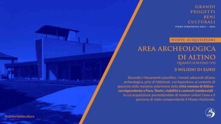 La terza acquisizione avviene in provincia di Venezia e riguarda alcuni terreni agricoli privi di fabbricati che, secondo i rilevamenti scientifici, corrispondono al contesto di giacenza della massima estensione della città romana di Altino, corrispondente a Foro, Teatri, viabilità e contesti residenziali. L’acquisizione permetterebbe di rendere unitaria e organica l’area archeologica e il percorso di visita comprendente il Museo Nazionale, AltinoLab e le aree archeologiche di Altino.