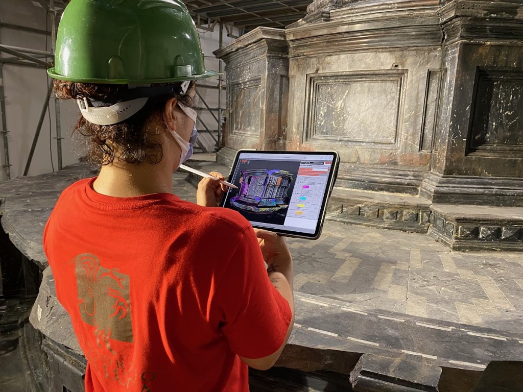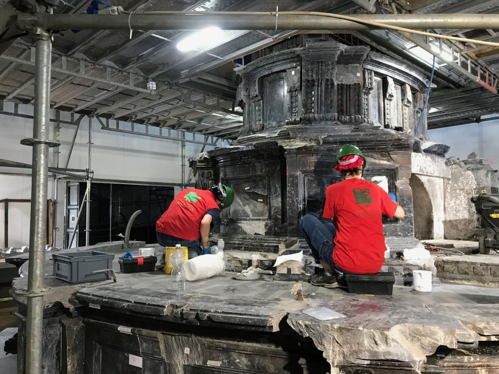 Sono state restaurate e integrate le parti lapidee e quelle lignee, e ricollocati nella loro posizione originaria gli apparati decorativi scultorei, scampati all’incendio in quanto ricoverati nell’attigua Sacrestia. In ultimo, sono stati ricollocati gli arredi sacri. A completamento, si sono ricostruite anche le balaustre in legno dorato dei tre coretti della Cappella, anch’esse completamente distrutte dall’incendio.