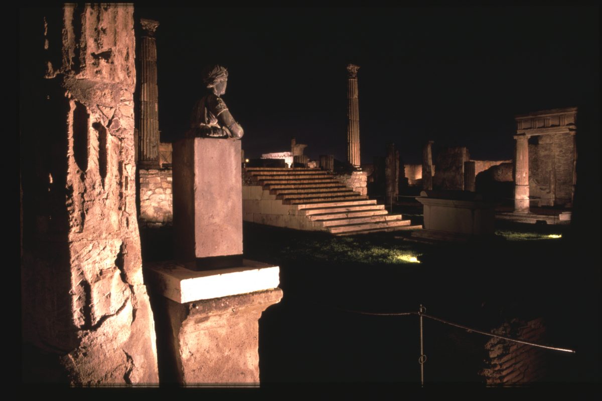 Fino al 26 agosto, tutti i venerdì sera, ad eccezione del giorno 12 agosto, dalle ore 20 alle ore 23, sarà possibile passeggiare a Pompei. Suggestioni notturne, proiezioni artistiche e un percorso sonoro accompagneranno i visitatori da Porta Marina – dove ha inizio il tragitto – sino all’area monumentale del Foro Civile, dove si affacciano tutti i principali edifici pubblici. A concludere il percorso è la visita all’Antiquarium, edificio che ospita uno spazio museale dedicato all’esposizione permanente di reperti che illustrano la storia di Pompei.