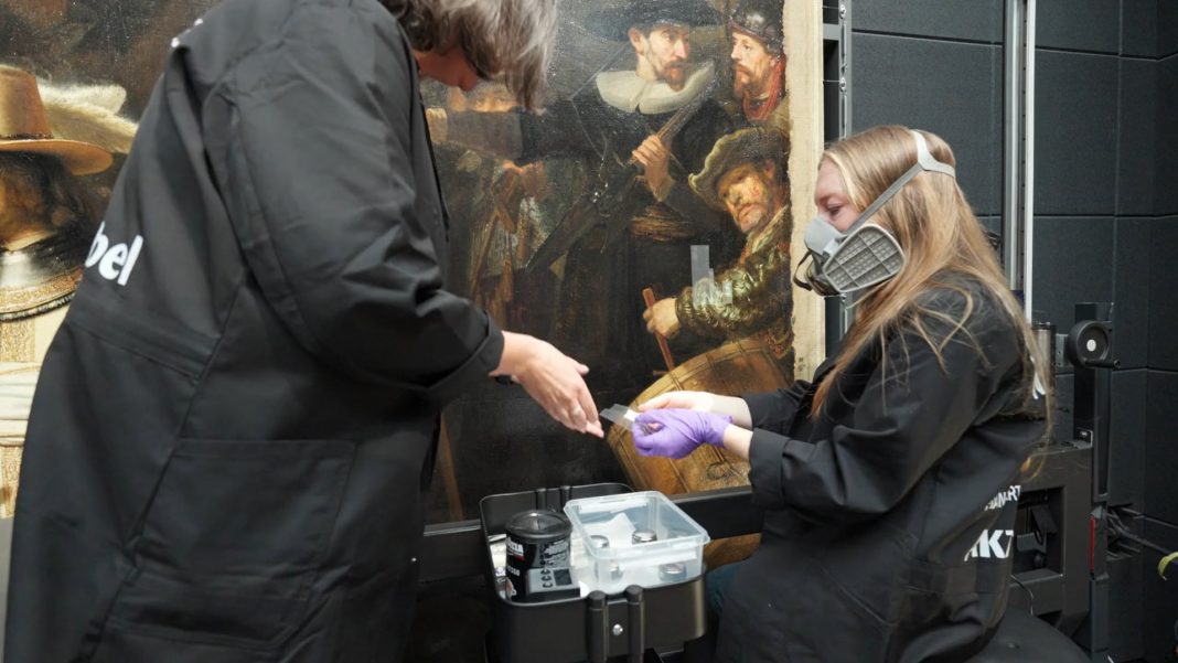 Nella seconda fase del vasto progetto di restauro, i conservatori del museo hanno iniziato a rimuovere la vernice dal dipinto, mantenendolo esposto al pubblico. Il processo prevede l’uso di panni in microfibra imbevuti di solvente per assorbire la vernice, seguiti da una pulizia con batuffoli di cotone al microscopio per eliminare eventuali residui. Il lavoro sarà condotto con precisione microscopica e sotto gli occhi del pubblico, nella speciale camera di vetro che gli spettatori del Rijksmuseum hanno imparato a conoscere in questi anni.