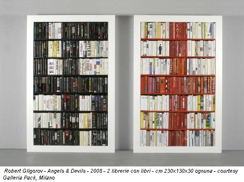 Parafrasando forse Dan Brown, Angels & Devils (2008) sono due scansie stracariche di volumi dai titoli più disparati, i cui dorsi, abilmente disposti, creano una svastica nera e una croce latina rossa. Risultato dal montaggio di alcuni video che registrano alcune sue performance, è nei testi di Mammut (2009) che Gligorov esplicita la sua denuncia: “Cancella la parola morte” è quanto esprime in Islam stop.