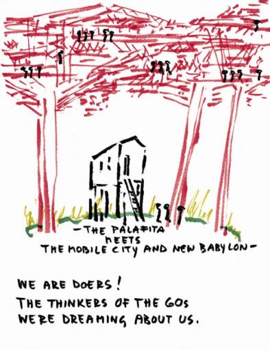A proposito del “fare mondi”, un possibile ambito tematico riconducibile alla figura dell’artista-demiurgo, l’artigiano-creatore di universi a sé stanti, i cui gesti “mettono al mondo il mondo” – parafrasando Alighiero Boetti – con modalità scopertamente o sottilmente fatidiche, è quello dell’intervento di tipo architettonico-ambientale. E in effetti non mancano, nel cast di Making Worlds, artisti cui ascrivere un’estetica demiurgica declinata in quest’ottica, secondo un’idea di edificazione sovversiva o di rielaborazione mirabolante dello spazio collettivo.