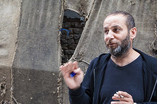 Parlando con lui ci racconta delle infinite difficoltà di realizzare questo lavoro, a partire dal ritrovamento di questo materiale di scarto, spesso anche radioattivo, di provenienza iraniana ed irachena, per finire al passaggio del materiale stesso attraverso la frontiera.