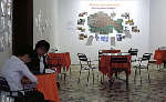 L’ambiente è accogliente. Ci sono tavolini e sedie. Ci si accomoda e si nota che su ogni tavolino c’è una figura trasparente.