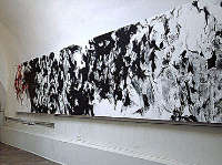 Chen KeZhan presenta un opera pittorica materica e dinamica che si estende per più di dodici metri dietro gli archi imponenti presenti nel padiglione.