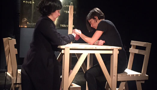 Stessa cosa è successa qualche giorno fa; mood triste, malinconia a palla, ed ecco di nuovo l’arte che arriva in soccorso. Gianluca Brogna mi invita a vedere la seconda edizione di una rassegna di performance che si tiene al teatro dell’orologio. Vado, perché le performance mi piacciono da sempre, ma ho la mente altrove, i pensieri sono distratti. Ed invece è da quando sono stata a vederle che lo ringrazio ogniqualvolta mi è possibile, perché mi sono piaciute molto, perché mi hanno distratto, ho sorriso, ed ho capito che Roma poi non è così morta, che ci sono artisti, quelli della generazione dei trentacinquenni, che hanno ancora molto da dire, che in silenzio lavorano, sodo, e si sanno esprimere. È da quella generazione che dobbiamo ripartire, se vogliamo ancora dire qualcosa in questa città. Le performance che vedo mi piacciono molto dicevo, intanto quella di John Cascone, che pensa un’operetta satirica con i principali termini utilizzati nei comunicati stampa dell’arte contemporanea. Tre giovani cantanti, tra l’altro a parer mio molto bravi, che cantano parole in libertà quali evocare politico riflessione territorio pittura. Un momento esilarante, una sana autocritica che tutti facciamo mentre loro cantano queste parole, probabilmente usate ed abusate da noi. Mi diverte la cosa, dobbiamo cominciare a non prenderci troppo sul serio. Molto interessante anche la performance di Mariana Ferratto, che di soppiatto e senza tanti clamori, fa girare una giovane donna nelle sale delle performance vestita ed atteggiata sempre in maniera diversa, folcloristica. Forse però c’era troppa gente per poter comprendere a pieno questo lavoro. Dissacratorio, divertente ma anche molto intimo il lavoro di Cesare Pietroiusti – ok lui non fa parte dei giovani trentacinquenni -, che possiamo considerare un pioniere della performance a Roma. In una delle sale del teatro da un lato con le cuffie canta canzoni di cui il pubblico non sente la musica che arriva solo alle sue orecchie. Melodie del passato, del passato comune, ma anche canzoni tristi, d’amore, ricordi della vita di Cesare. Bella ed intensa (intensa è una parola che io uso spesso, eppure Cascone non l’ha inserita!). C’è poi Elena Bellantoni, che mi stupisce ogni volta di più, superlativi i suoi lavori; si mette in gioco con tutto il corpo, usando la forza fisica come facevano le performer di una volta. Nel suo volto e nel suo corpo si legge la stanchezza, la consapevolezza di un lavoro duro, complesso ma empatico e risolto. Stesso entusiasmo per il lavoro di Silvia Giambrone, che mi è piaciuto perché corale e molto coinvolgente. Da dire sul lavoro di Filippo Riniolo ho poco, perché forse non l’ho capito!