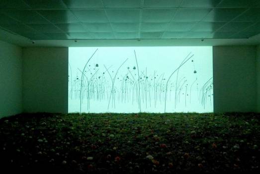Al termine della navata centrale, come in un’abside, l’artista conduce lo spettatore a un raccoglimento interiore attraverso l’installazione Animitas (Blanc) realizzata da un tappeto di fieno e fiori, di cui è possibile percepirne il profumo, e da un video, girato nel deserto di Atacama in Cile, in cui sono proiettati steli di alcune piante mossi dal vento, sulle cime dei quali sono stati installati più di 300 campanellini, che rappresentano la Sky map della notte in cui l’artista è nato. Il suono dei campanelli immerge in una dimensione atemporale e sospesa.
