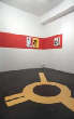L’artista australiana Heidi Wood , residente da oltre dieci anni a Parigi, alla sua prima personale in Italia, presenta nuovi interventi pittorici che completano la serie Serving Suggestion iniziata nel 2001. Nella pratica creativa di Heidi Wood, sospesa tra pittura, installazione e dimensione ambientale, scompaiono i confini circoscritti della superficie tradizionale; l’artista si serve di supporti bidimensionali, poveri e neutri, come le tele o i più comuni tessuti da tappezzeria che decora con i classici colori ad olio per creare grandi aree cromatiche, uniformi, pulsanti e sature di colore, che superano i margini del telaio e prolificano nello spazio della galleria. Il colore si libera e diventa elemento protagonista e autonomo, puro dato fisico, organizzato dall’artista in fluide strutture compositive, tra cerchi concentrici, piatte tarsie rigide e geometriche ed altre flessuose: sono forme liquide, monocrome che invadono l’ambiente espositivo e dialogano con gli spazi della galleria superando il limite fisico imposto dalle singole tele. Gli interventi di Heidi Wood sono pensati e realizzati appositamente per la Galleria Plastica, ma potenzialmente potrebbero essere fruiti in qualunque altro contesto ed occasione espositiva. Se nell’ambito dell’Astrazione Post-pittorica si poteva parlare di ”Pittura campo cromatico” con la creazione di spazi di concentrazione, Heidi Wood sembra ironicamente rovesciarne i termini attraverso la dissonanza e il contrasto, mentre l’idea di uno spazio colorato, legato all’esperienza cromatica
