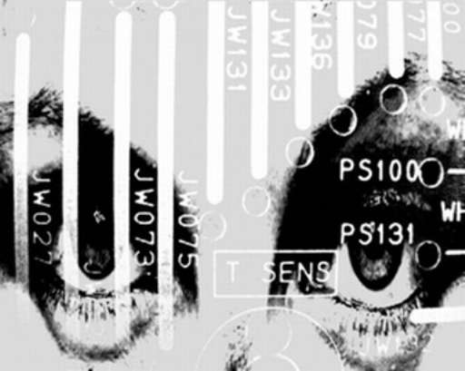 Occhi che interrompono il ricorrersi di fotogrammi virtuali guardando fisso verso gli spettatori e cercando un contatto con loro. Quel che deriva è una sensazione di profonda solitudine e claustrofobia. Non per criticare la bio-informatica e il progresso tecnologico, ma per invitare alla ricerca di una mediazione. Tra questo e l’umanità.
