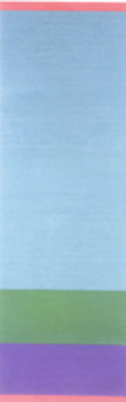 Ipercromo, titolo dell’esposizione, sottolinea l’interesse dell’artista per il colore come unico elemento compositivo, tra pause, piani squillanti ed equilibri incerti. In quest’ultima serie di lavori si registrano sostanziali mutamenti rispetto alla sua usuale pratica operativa: utilizzando il telaio serigrafico filtra la materia e sospende il gesto; l’individualità della pennellata e il vitalismo del movimento lasciano il posto alla trama della tela che emerge in tutta la sua ordinata regolarità. Il colore si deposita sul supporto