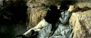 Intorno alle bacheche delle foto e dei trattati si svolge tutta la teoria di quadri che rendono conto delle medesime passioni, trasferendole in opere la cui concitazione aumenta nella seconda sezione, ‘La passione in pittura’: amanti, tradimenti, la morte degli eroi e le gesta dei vittoriosi, il dramma della gelosia e il martirio patriottico… A raccontarci queste scene sono alcuni tra i maggiori pennelli italiani dell’Ottocento: da Hayez a Domenico Morelli, da Michele Rapisardi a Michele Cammarano, a Gaetano Previati, sfondando appena la soglia del nuovo secolo. Il mutare della sensibilità pittorica e artistica in generale modificò, con il Novecento, il modo di percepire queste passioni sul palcoscenico e quindi il modo di rappresentarle. Anche le opere mutarono: dal romanticismo storico, dalla ricostruzione – aimè spesso imprecisa – di ambientazioni medievali o rinascimentali, perfette occasioni per inscenare drammi dalle tinte forti, si passò con l’avvicinarsi del nuovo secolo ad una verità maggiore di affetti e di resa sulla scena, con le storie delle eroine quotidiane, di una Tosca o di Mimì…