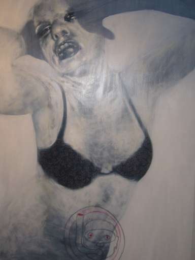 Angelo Bellobono propone un’analisi in chiave esistenzialista della figura umana. Visi dall’imponenza scultorea e duri nell’espressione, oppure diafani e dai contorni evanescenti, lasciano trasparire debolezze, tensioni interiori, angosce e ferite malcelate. Emerge il rapporto conflittuale dell’uomo con il proprio corpo e con i farmaci.