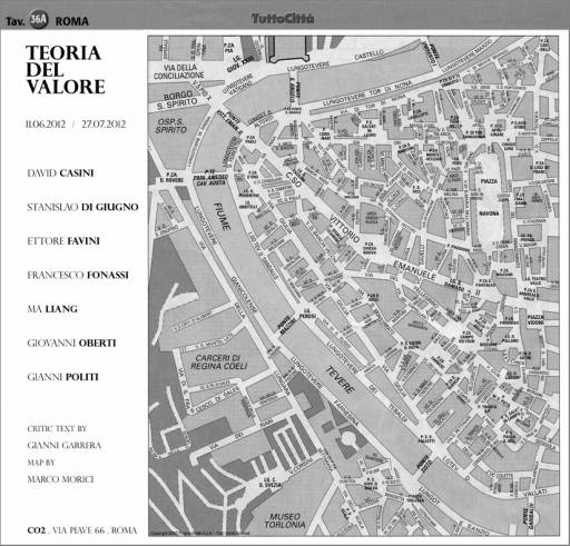 Le opere finiscono in alcuni negozi e in galleria arrivano le merci che l'artista ha scelto tra quelle esposte nel negozio dove si trova il suo lavoro. Con la mostra "Teoria del valore", Giorgio Galotti, direttore della galleria CO2 di Roma, propone una riflessione sull'opera d'arte come merce di scambio
