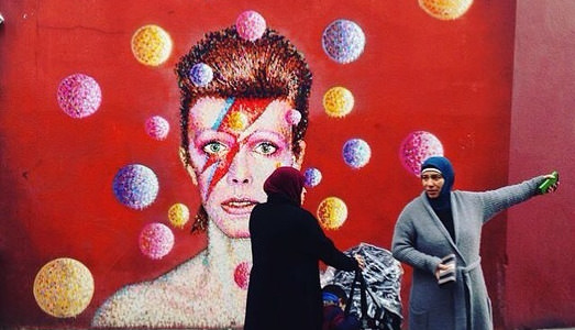 Lui è psichedelico come non mai. Elettrico e colorato, bellissimo. Loro per fortuna non sono velate, ma non c’è dubbio che siano donne musulmane....