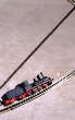 Una selva di bandiere pendono dal soffitto della galleria, alcune contenenti massime e pensieri; una piccola locomotiva viaggia su rotaie che sfidano le leggi della fisica. E’ l’arte “etica” di Luca Vitone. Forse collocata nello spazio sbagliato...