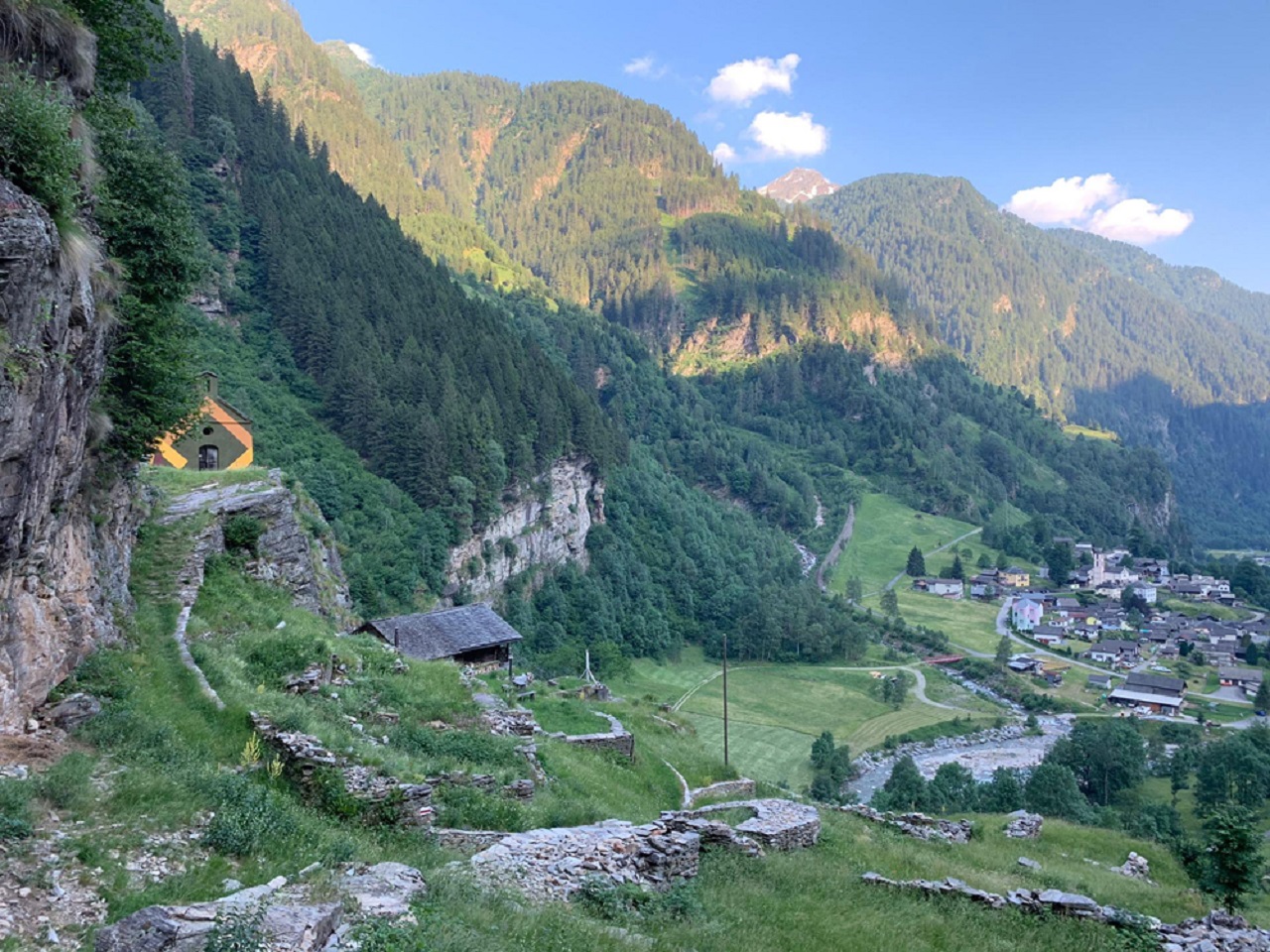 Il paese di Rossa, nel Canton Grigioni, in Svizzera, si tinge dei colori di David Tremlett. Le facciate della Cappella di San Carlo al...
