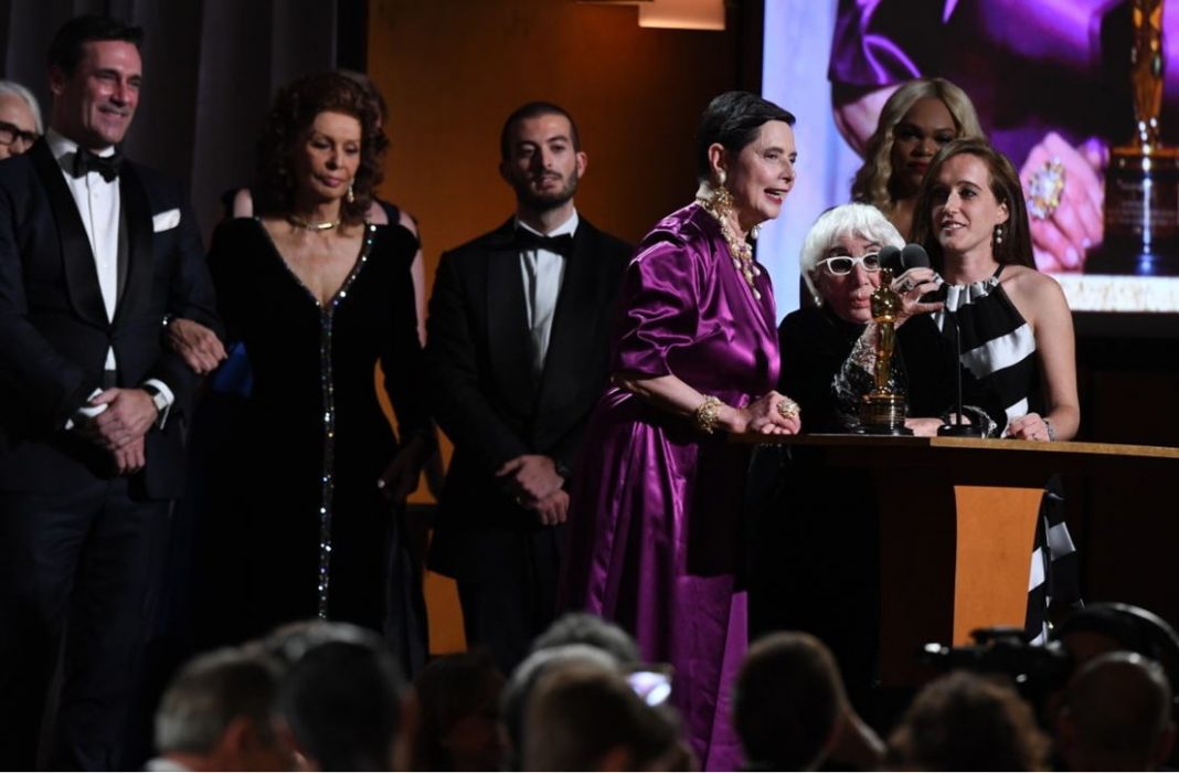Trionfo di applausi per Lina Wertmüller che poche ora fa, sul palco dei Governors Award, a Los Angeles, ha ricevuto l’Oscar alla carriera, consegnatogli dalle colleghe Greta Gerwig e Jane Campion. Con accanto la figlia, Maria Zulima Job, Isabella Rossellini e Sophia Loren, la regista, prima donna che nel ’76 fu candidata per l’Oscar alla regia ha commentato con ironia che «bisogna cambiare il nome a questa statuetta, perché Oscar? Chiamiamolo con un nome di donna, chiamiamolo Anna».