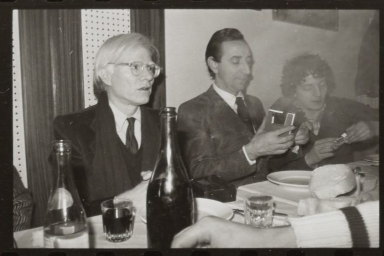 Andy Warhol è a tavola, insieme ad altri amici napoletani. C’è Mario Franco che lo riprende mentre lui, a sua volta, gli scatta delle foto. Lucio Amelio al suo fianco, sorridente e soddisfatto dell’atmosfera che si è creata nello storico ristorante “Dante e Beatrice”, di Piazza Dante. Le immagini dell’artista newyorkese sono ai limiti del bianco e nero, scorrono rapide e passano ad altro. Eppure rimane qualcosa negli occhi, sullo schermo, come una polvere, una coda del racconto poggiatasi su quelle sedie, su quel tavolo di legno, un pezzo di memoria insaporito dal sale, dalle salse o della famosa frittata di maccheroni di Antonio Casillo, indimenticato proprietario del rinomato ristorante.