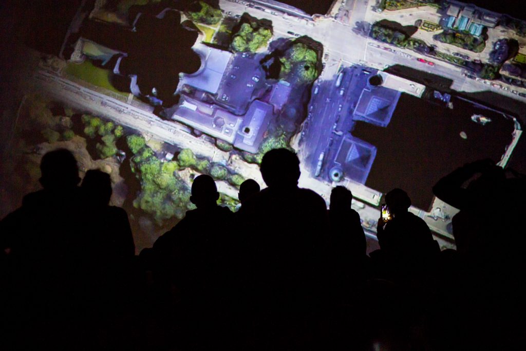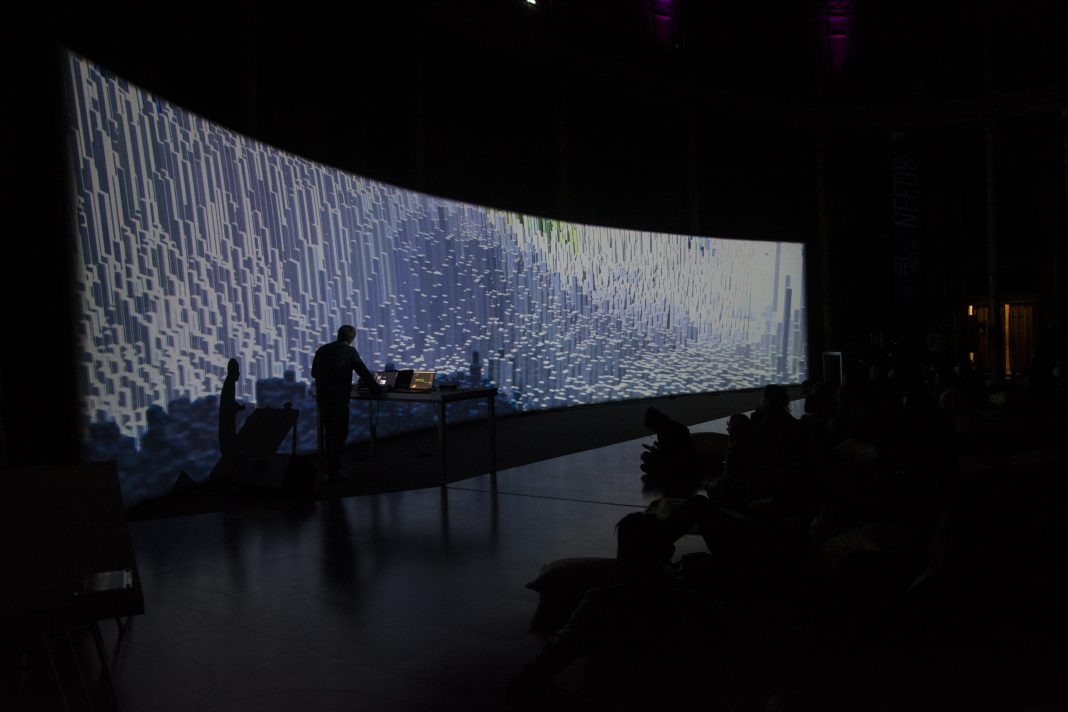 E ancora, il canadese Maotik ha presentato Aeryon, in cui la visione di un drone di sorveglianza veniva trasformata in informazioni sonore tramite frequenze radio, con risultati davvero stupefacenti. D’altronde, se in Aeryon i dati, recuperati dal GPS, vengono completamente traslati in immagini spettacolari, prive di ogni rapporto col mondo dei fenomeni, ancora più interessante è stata, per la mia personale sensibilità (ma qui devo confessare le mie inclinazioni di studioso del cinema e dei discorsi sulla spazialità), l’esperienza proposta da Dylan Cote e Pierre Lafanechère con il loro Earthsatz.