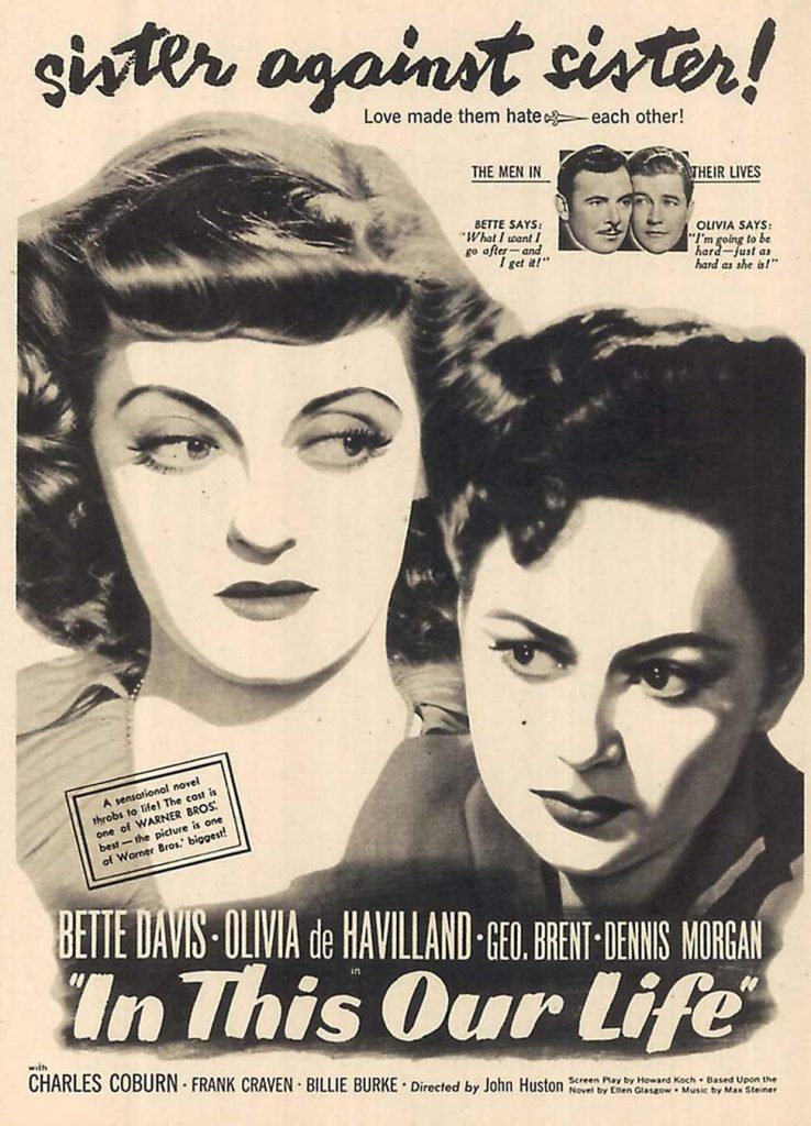 A tal proposito, comunque, Olivia poteva vantare una pluridecennale amicizia con Bette Davis, sua agguerritissima collega alla Warner, che De Havilland riuscì addirittura a mettere in ombra: sia in In questa nostra vita di John Huston, nel 1942, che molti anni dopo, quando nel 1964 Robert Aldrich la chiamò in Piano, piano dolce Carlotta, nel 1964. E ancora, una delle interpretazioni più efficaci, godibili ma anche raffinate di Olivia fu proprio nel doppio ruolo di due gemelle identiche (l’una di indole buona, l’altra psicopatica) in Lo specchio scuro (Robert Siodmak, 1946). Mettendo in scena la pericolosa prossimità tra Bene e Male, De Havilland dà qui prova di una consapevolezza autoriflessiva e finanche ironica degli stereotipi che costruivano e costruiscono il femminile nell’immaginario collettivo.