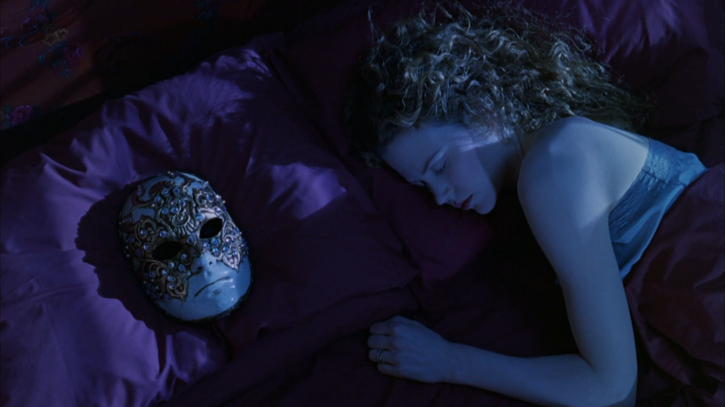 La sublimazione nel sogno, la confusione tra realtà e dimensione onirica, amplificano la percezione di ogni cosa e il personaggio di Alice è un sottile filo rosso che permea tutto il film. L’interpretazione di Nicole Kidman, grazie alla sua straordinaria capacità di essere così ambigua, restituisce Alice costantemente e anche nelle scene in cui non è presente, aleggia nella narrazione, nell’immaginazione di Bill che ossessivamente cerca di comprenderla, di vederla sotto questa nuova luce che non la rende adultera ma umana.