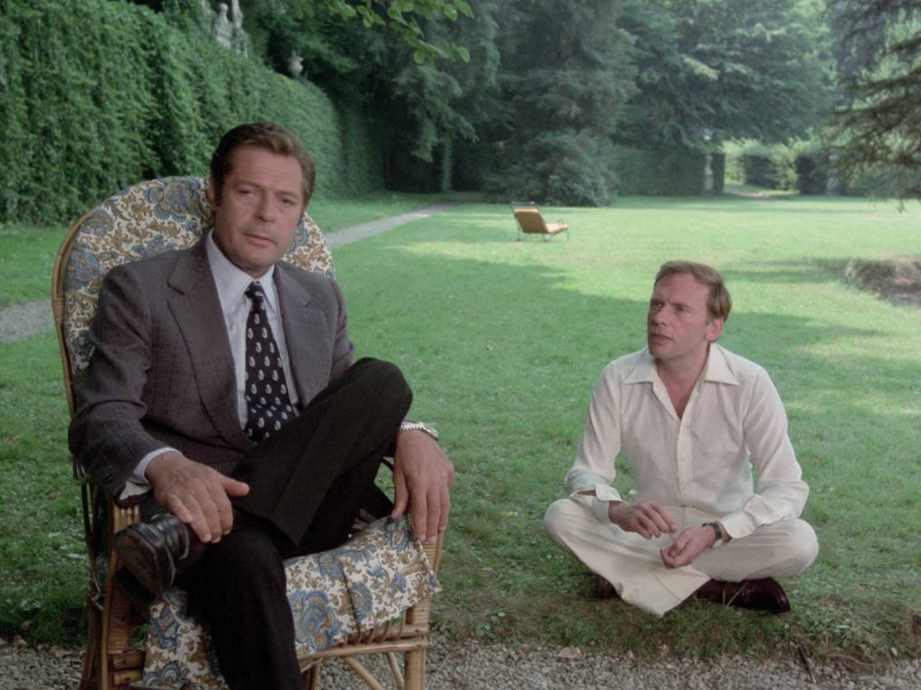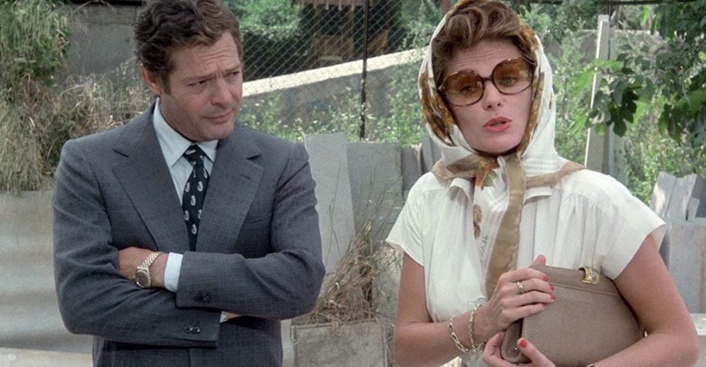 L’uomo che viene ucciso, questo architetto Garrone, è caratterizzato nella sua volgarità e la sua uccisione avviene attraverso una scultura a forma di pene. Le indagini vengono condotte dal commissario Santamaria, uno straordinario Mastroianni che resta immediatamente stordito dal fascino di Anna Carla Dosio, bella come un ritratto di Boldini.