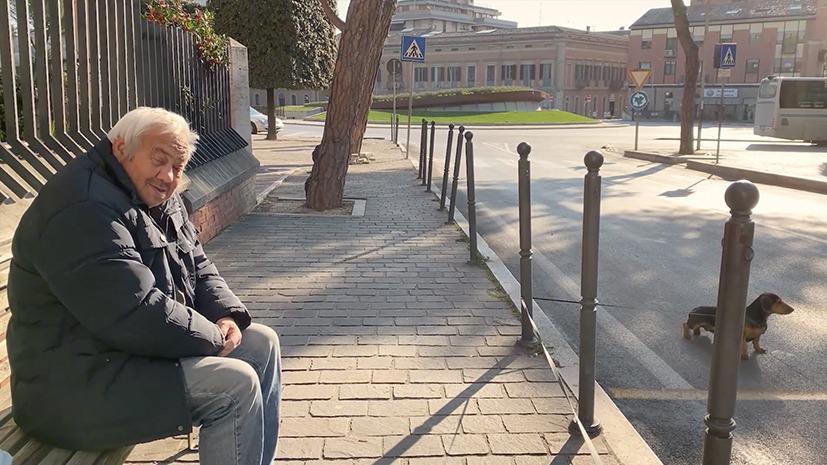 Una Piazza. Piazza Garibaldi, Teramo. Una coppia. Marco (Chiarini, regista) e Roger (animale, bassotto). Uno sguardo doppio, fatto di numerosi sapienti tagli, che plana su ciò che è semplice e ordinario con rispetto e arguzia. La carezza dell’essere umano all’animale è la metafora, molto utilizzata dal regista, della relazione umana che si costruisce paziente nel tempo, nel susseguirsi delle stagioni e degli anni, nei silenzi, negli sguardi tersi, contrariamente alla velocità, intesa a partire dal senso futurista, e alla nevrosi di un mondo che ci vuole sempre pronti, performanti, competenti. E sempre più soli.