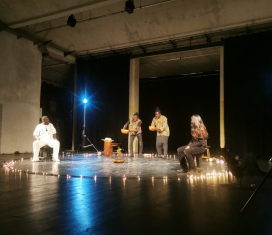 Giungerà in un finale a effetto, quando, schierati in proscenio, estrarranno da alcune ciotole della polvere che si sbatteranno con veemenza ripetutamente sul petto aprendo le braccia verso l’alto. Una sequenza liberatoria che, complice la luce, richiama il nostro comune anelito a rinascere a nuova vita.
