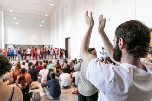 Dopo un tour che l’ha visto protagonista nei più importanti festival estivi italiani – da Santarcangelo Festival a Centrale Fies – e dopo una giornata a lui interamente dedicata nella seconda edizione di FOG, il festival delle arti performative diretto da Umberto Angelini, Alessandro Sciarroni torna alla Triennale di Milano con Happiness, risultato finale di un laboratorio con quarantanove studenti delle scuole di alta formazione teatrale milanesi.